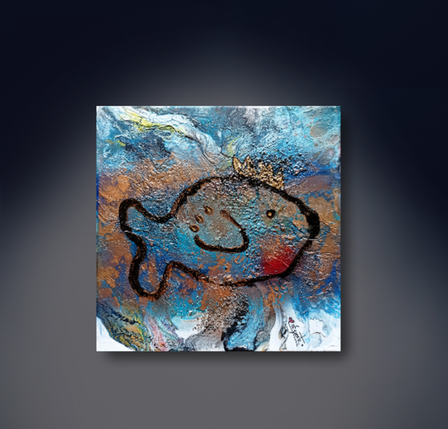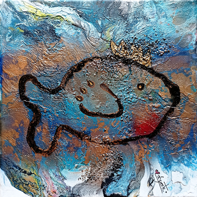Réalisé sur une toile coton de 30x30cm cloutée sur châssis bois.