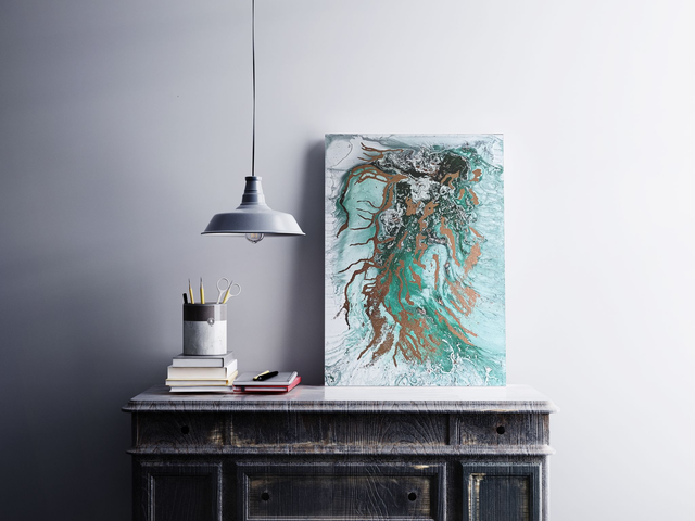 Ce tableau abstrait apporte une grande sérénité pas ses tons légers de vert.